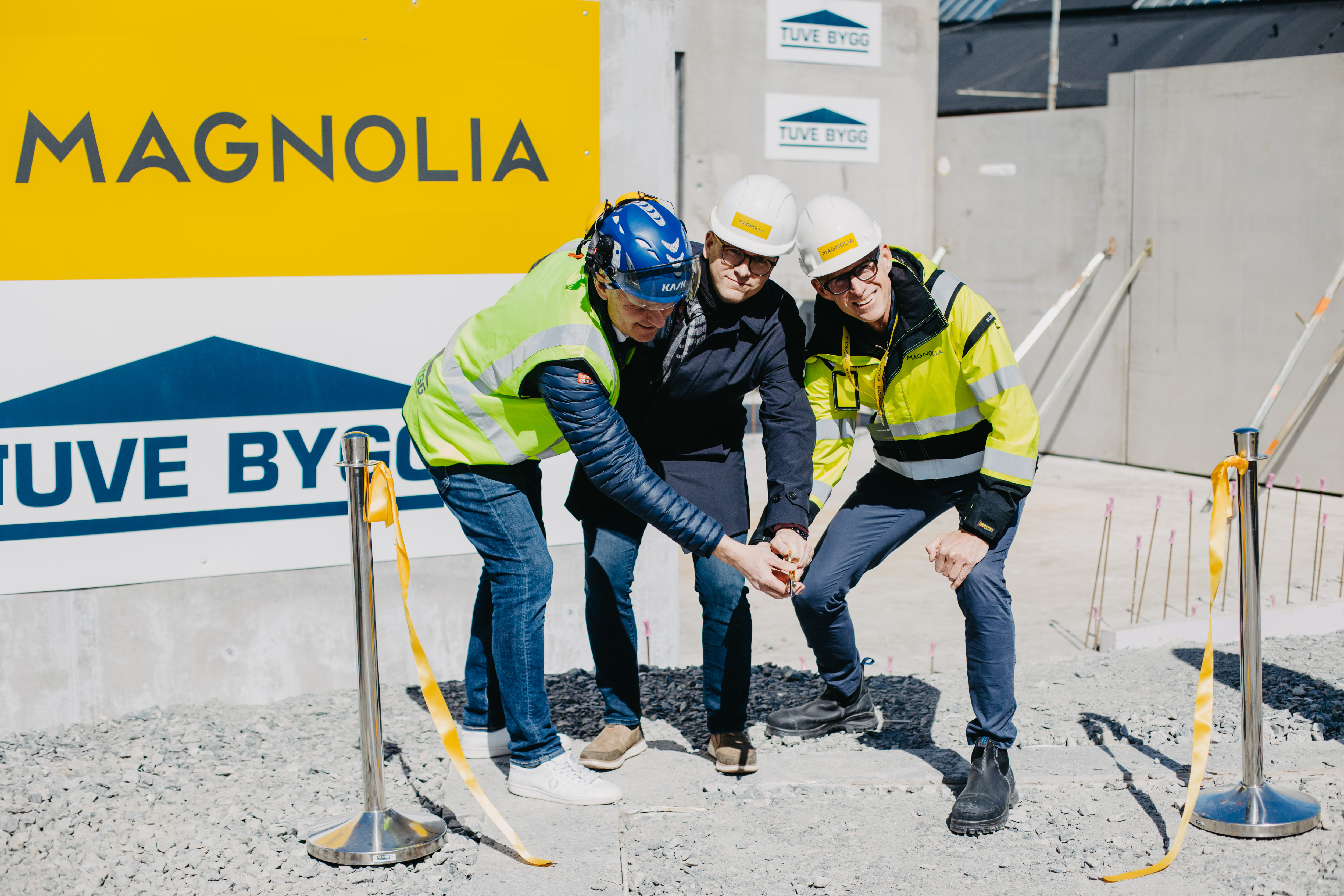 Byggnationen av bostadsrättsprojektet Linneförrådet i Majorna påbörjades i augusti 2022. Nu är grunden lagd och det är dags för väggarna att resas. Vi har uppmärksammat detta med en invigningsceremoni som ägde rum igår med bandklippning och resning av vägg. Bandklippningen gjordes av Göteborgs kommun, Magnolia Bostad och Tuve Bygg.